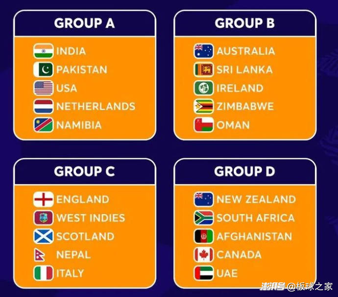 A組:印度、巴基斯坦、美國(guó)、荷蘭、納米比亞