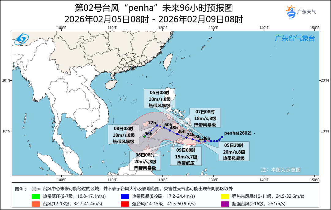 2月4日20時(shí),今年第2號(hào)臺(tái)風(fēng)“西望洋”(熱帶風(fēng)暴級(jí),英文名:Penha,名字來源:中國(guó)澳門,意義:西望洋山,澳門新八景之一)生成,5日08時(shí)其中心位于菲律賓馬尼拉東南方向約1180公里的洋面上,就是北緯8.0度、東經(jīng)129.5度,中心附近最大風(fēng)力有8級(jí)(18米/秒),中心最低氣壓998百帕。