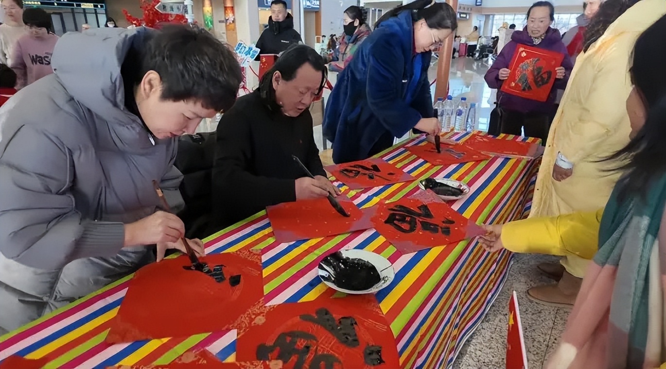 活動(dòng)現(xiàn)場(chǎng),“暖心送福”環(huán)節(jié)同樣暖意融融。書(shū)法家們揮毫潑墨,筆鋒流轉(zhuǎn)間,一個(gè)個(gè)遒勁有力、寓意美好的“?!弊周S然紅宣,游客們接過(guò)一幅幅新春福字,揣著滿滿的祝福,暖意洋洋踏上歸途。