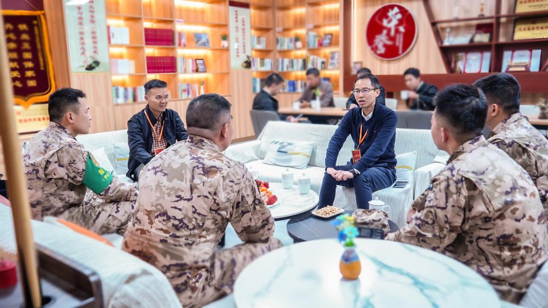 慰問團(tuán)與部隊(duì)官兵座談交流。