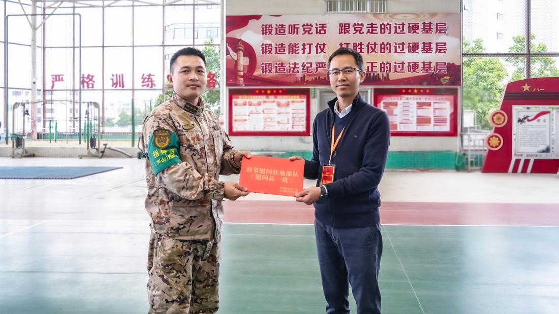 為部隊(duì)送上慰問品。