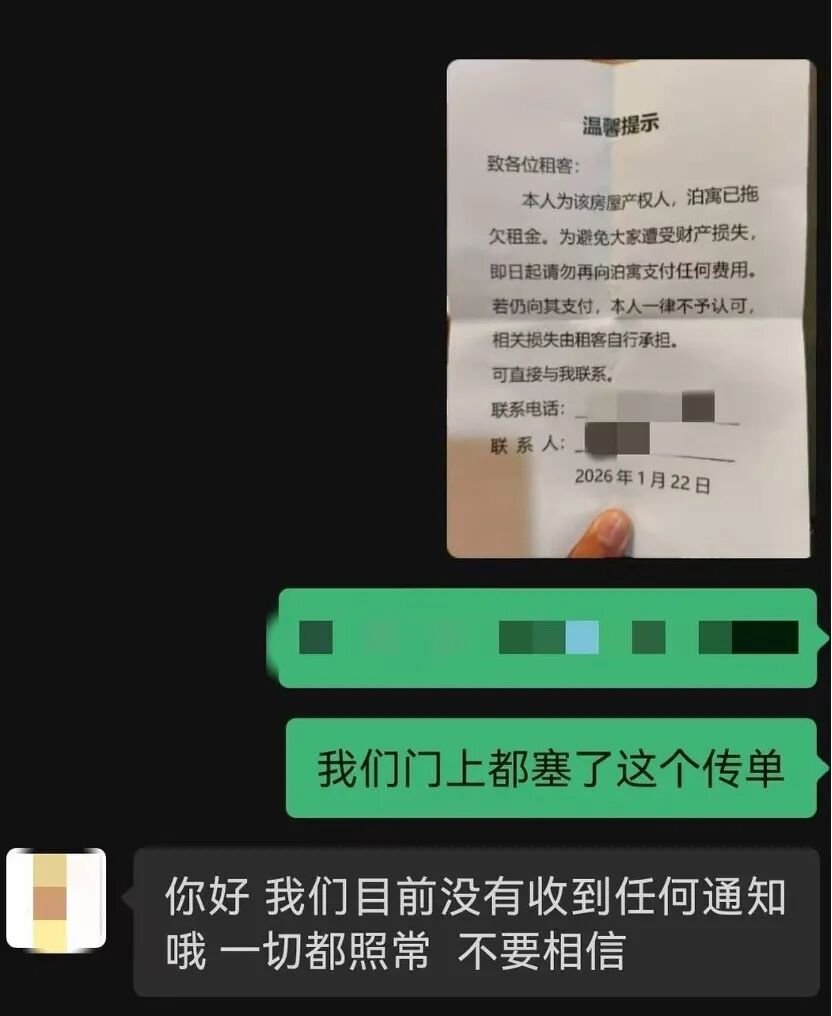 他打開(kāi)過(guò)泊寓APP查看,門(mén)店顯示“滿房”,“但我們其實(shí)知道是有空房的,所以這個(gè)操作其實(shí)有點(diǎn)不正常”。1月末以來(lái),公寓里的變化讓鄰居們感知到一些風(fēng)險(xiǎn)的前兆。之前他們幾乎每天都能看到管家在樓下坐著,但最近很少在線下看見(jiàn)對(duì)方了,只在線上保持聯(lián)系。
