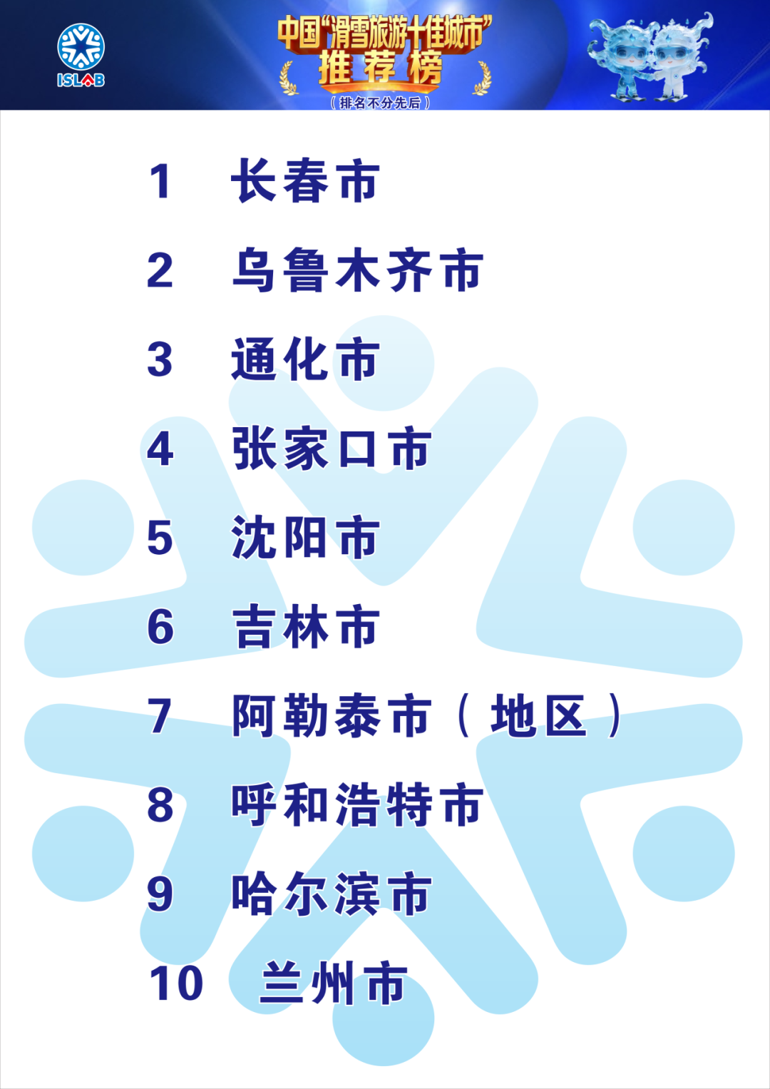 長春市入選“滑雪旅游十佳城市”推薦榜