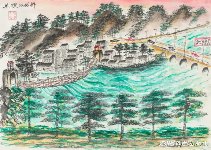 2023年復(fù)制上世紀(jì)八十年代,我是桐梓縣電影公司農(nóng)村電影隊的放映員,在巡回放映在羊磴期間,用水粉寫生畫了羊磴河邊一景。羊磴離縣城較遠(yuǎn),偏僻,貧困又落后,每月兩三次的電影放映,就是那里的最熱鬧的文娛活動。這幅寫生畫,在當(dāng)時可能是羊磴歷史上第一幅在地的創(chuàng)作。