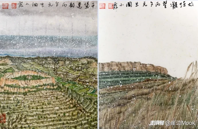 弟弟叫我畫一哈對老家的印象和記憶,我就畫了老東梁上的堡子、十字路口墻跟兒那間高房。筆尖尖一挨紙,滿腦子是山墻后頭藏貓貓的光景,土坡坡上放羊的歡樂……哈哈,畫著畫著,心就飛回那個年月了。