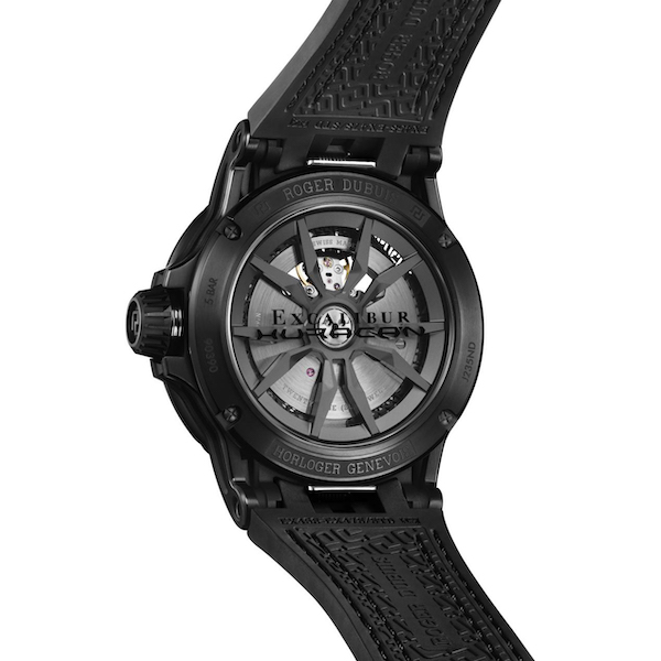嶄新的全黑 Excalibur Huracán 腕表搭配黑色 DLC 涂層鈦合金表殼和表圈,散發(fā)出強(qiáng)烈的時(shí)尚氣息,而 Roger Dubuis 羅杰杜彼無疑是創(chuàng)造此種獨(dú)特風(fēng)格的專家。