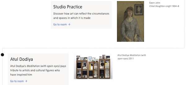 泰特不列顛美術(shù)館疫情期間,泰特美術(shù)館在線上展現(xiàn)了一系列內(nèi)容,“穿過英國藝術(shù)”(Walk Through British Art)帶領(lǐng)觀眾探索1545年至今英國最偉大的藝術(shù)品;“在工作室”(In the Studio)探索藝術(shù)家創(chuàng)作的過程,以13個不同的虛擬展廳來歸納和比較他們的思想和手法?!懊襟w網(wǎng)絡(luò)”(Media Networks)審視過去的一百年中,藝術(shù)家如何回應(yīng)大眾媒體的影響,以及不斷更新的技術(shù)如何塑造我們的世界。此外,美術(shù)館內(nèi)的不少過往展覽也通過線上呈現(xiàn)。與此同時,泰特美術(shù)館通過Instagram等社交平臺與觀眾保持聯(lián)系。