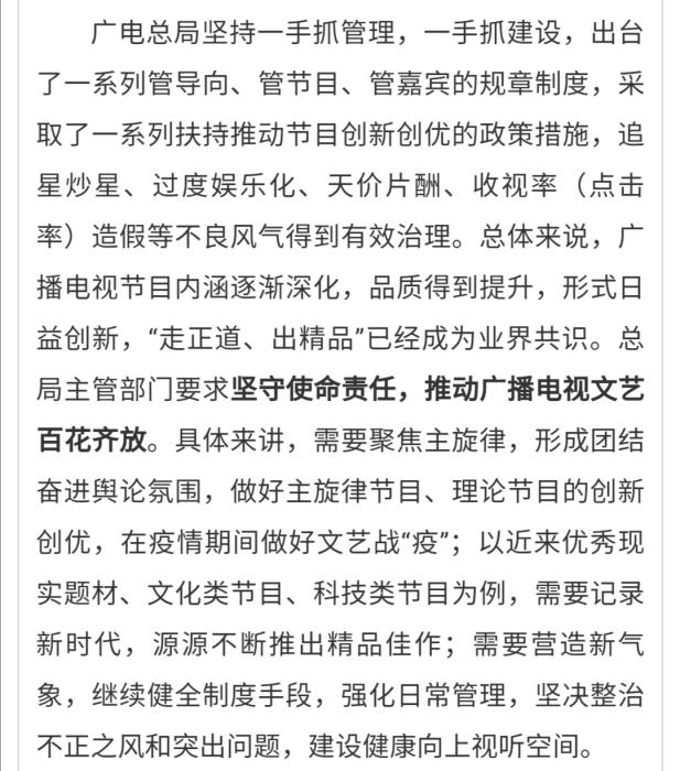 廣電總局:追星炒星、天價片酬等不良風氣得到有效治理