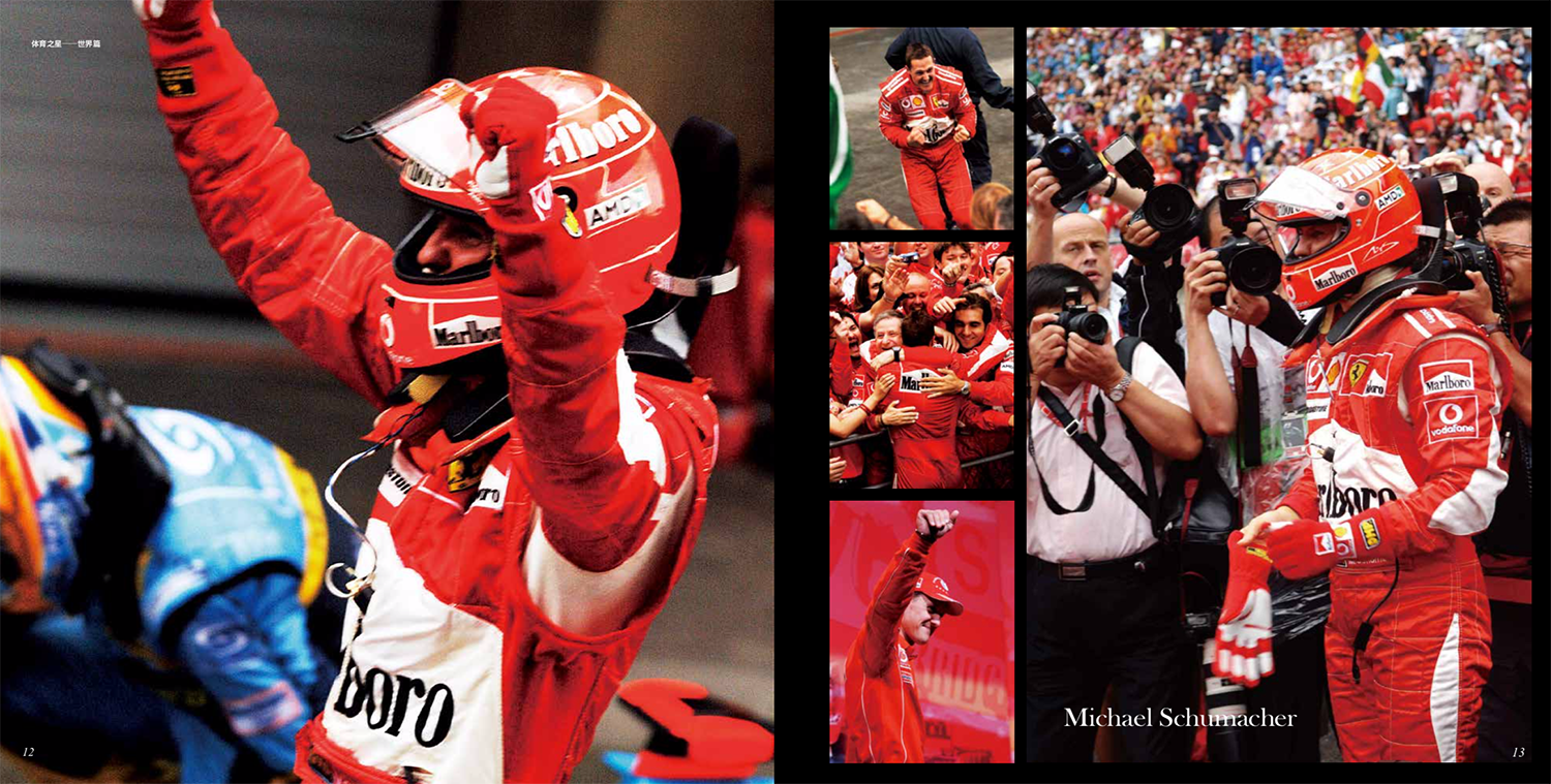 《體育之星·世界篇》畫冊12,13頁,舒馬赫,德國一級方程式賽車車手,曾獲得7次世界冠軍。