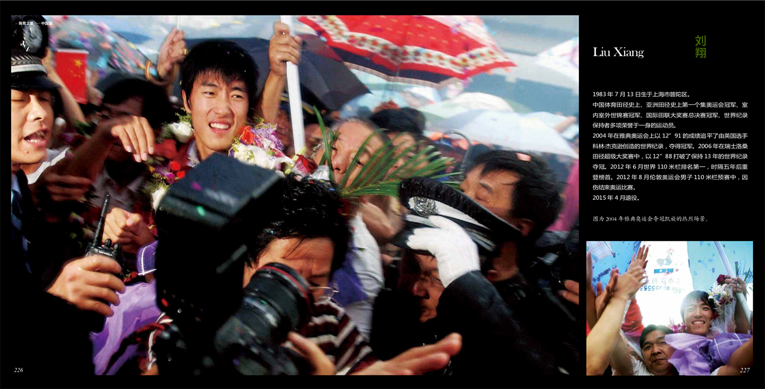 《體育之星·中國篇》畫冊226,227頁,2004年雅典奧運會劉翔奪冠凱旋。