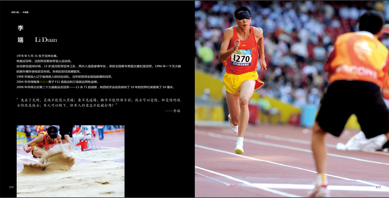 《體育之星·中國篇》畫冊314,315頁,李端,盲人運動員,雅典殘奧會,北京奧運會冠軍。