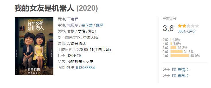 豆瓣3.6,喜提2020年度院線片第一低分。