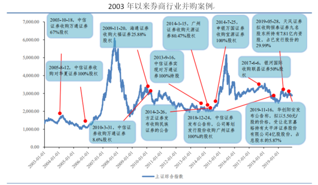2003年以來券商行業(yè)并購案例(來源:Wind,長城證券研究所)