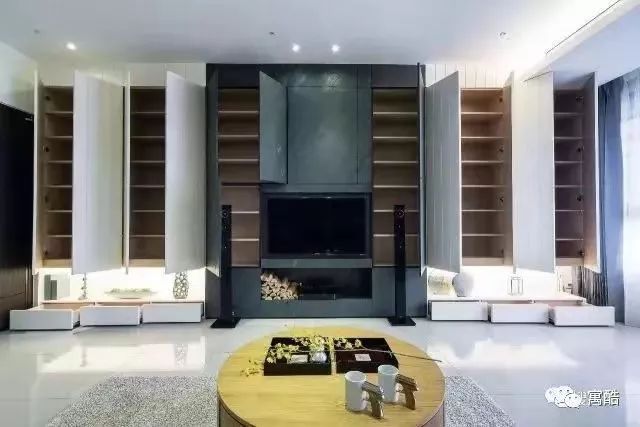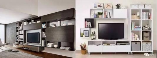 這種方式一般除了衣帽間,我們最常碰到的就是客廳的收納。比如我們看兩張圖: